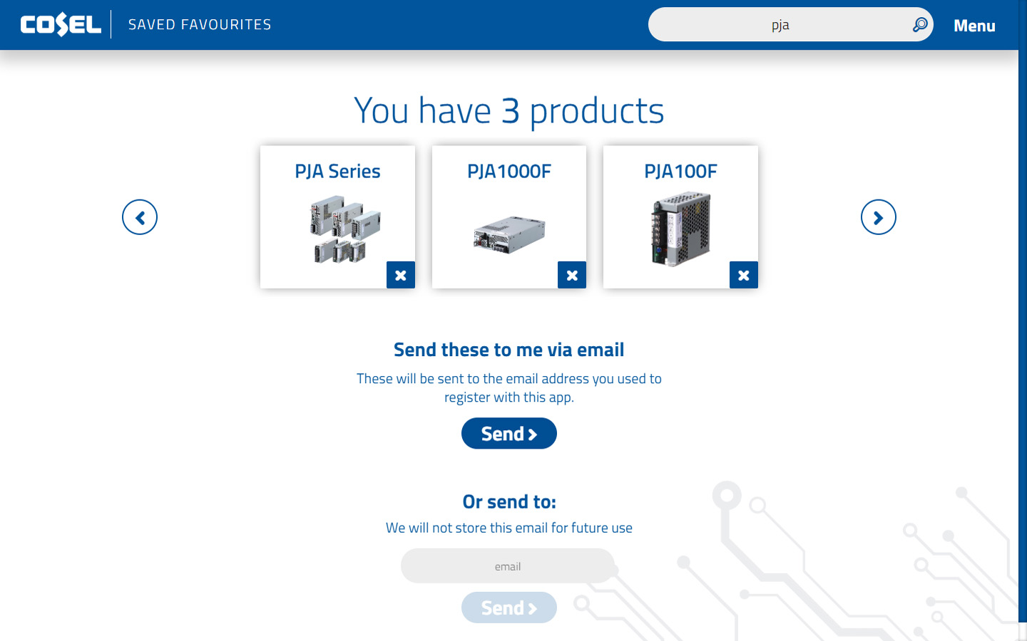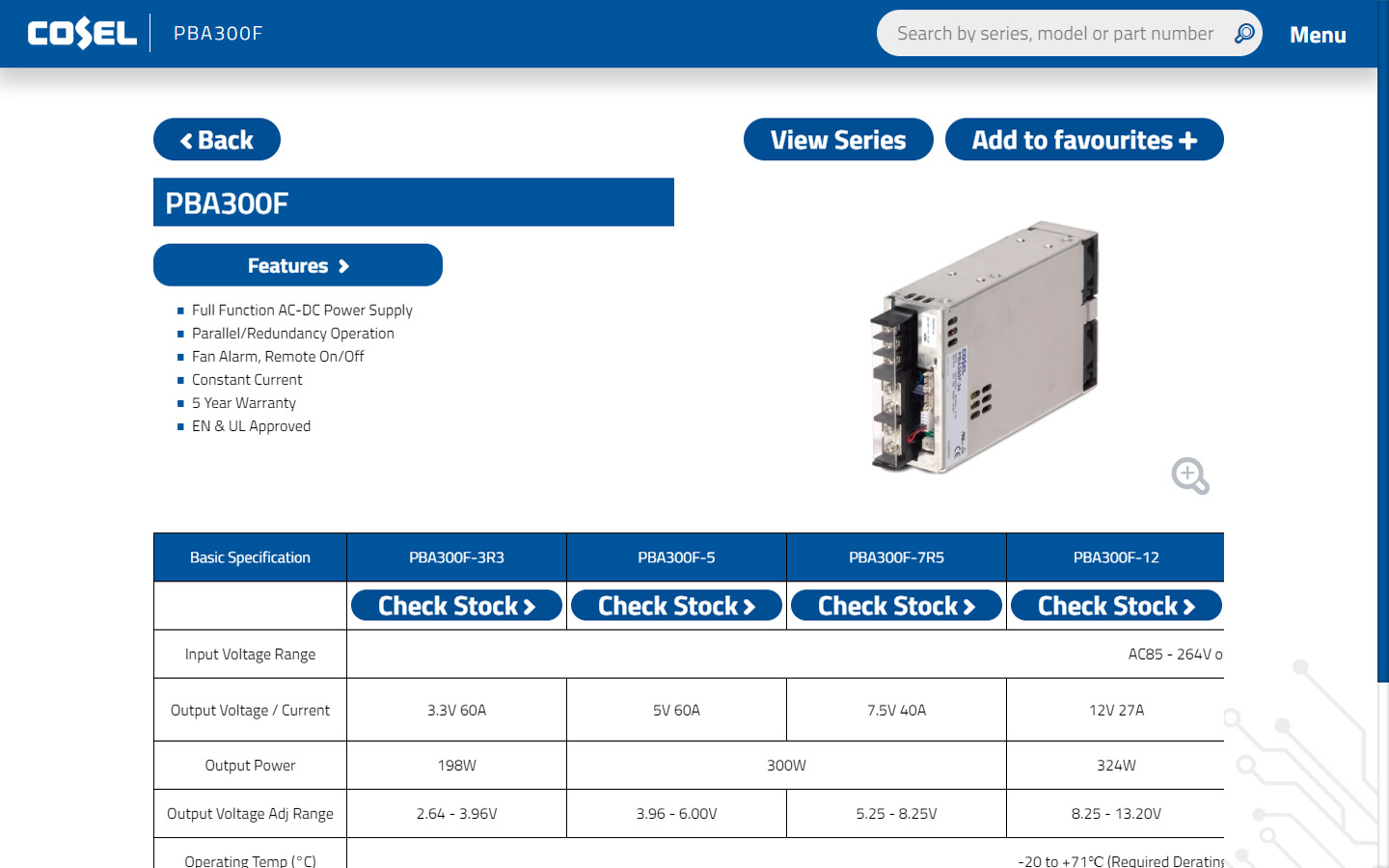 Cosel Product Selector App for Desktop PC/Mac, Tablet & Mobile devices
